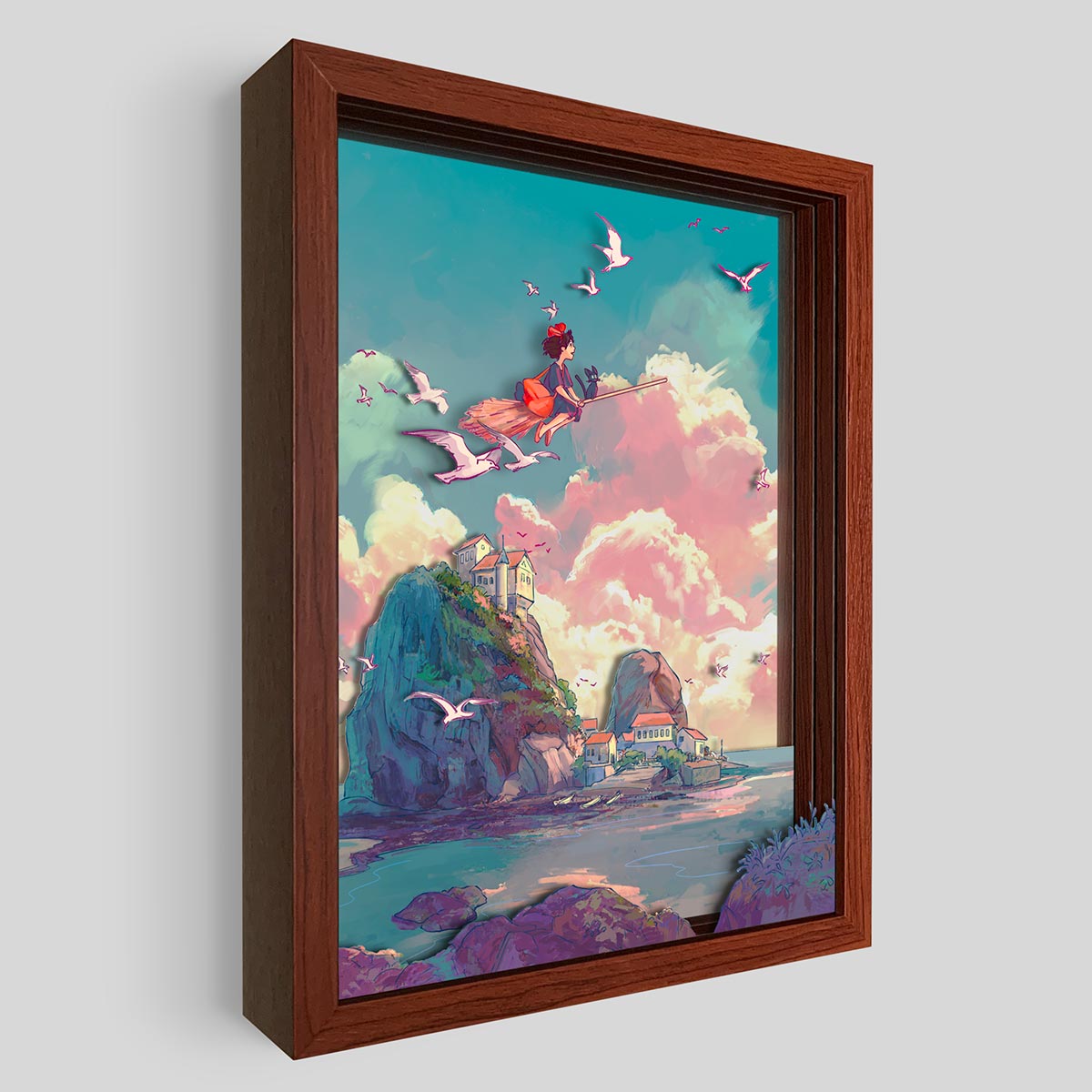 It's an absolutely stunning Kiki's Delivery Service print. I chose a gold frame to contrast with the soft spring colors of this print. I'm impressed with the quick shipping, high-quality art, and uniqueness.