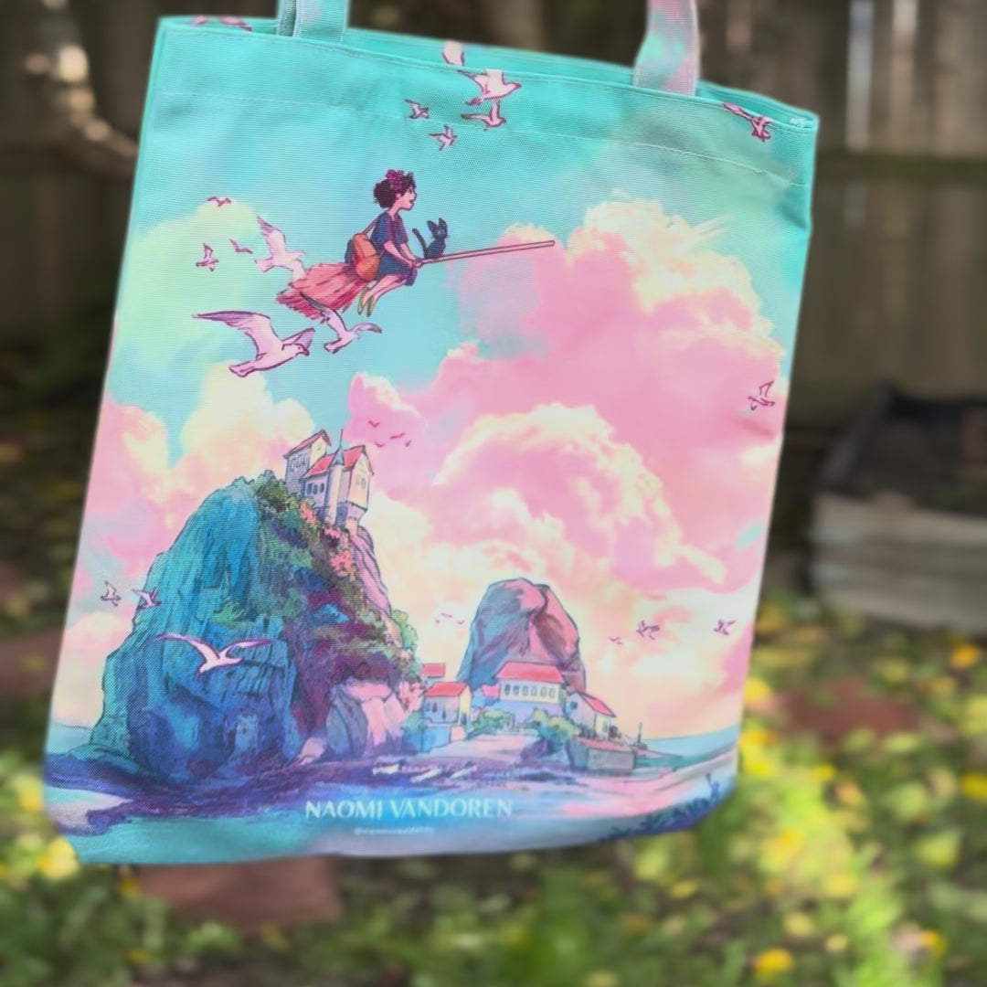 It's an absolutely stunning Kiki's Delivery Service print. I chose a gold frame to contrast with the soft spring colors of this print. I'm impressed with the quick shipping, high-quality art, and uniqueness.