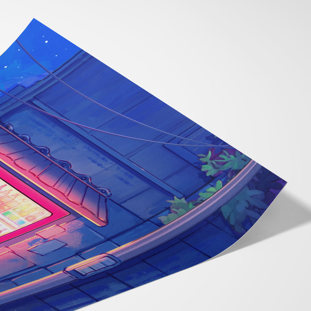 A perfect print for night owls, city dreamers, and lovers of feline mischief.