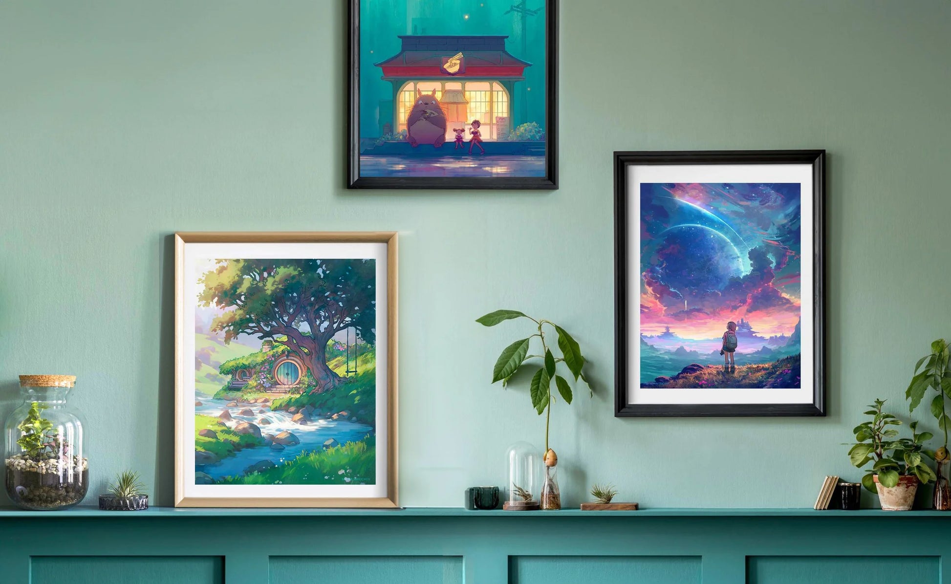 It's an absolutely stunning Kiki's Delivery Service print. I chose a gold frame to contrast with the soft spring colors of this print. I'm impressed with the quick shipping, high-quality art, and uniqueness.